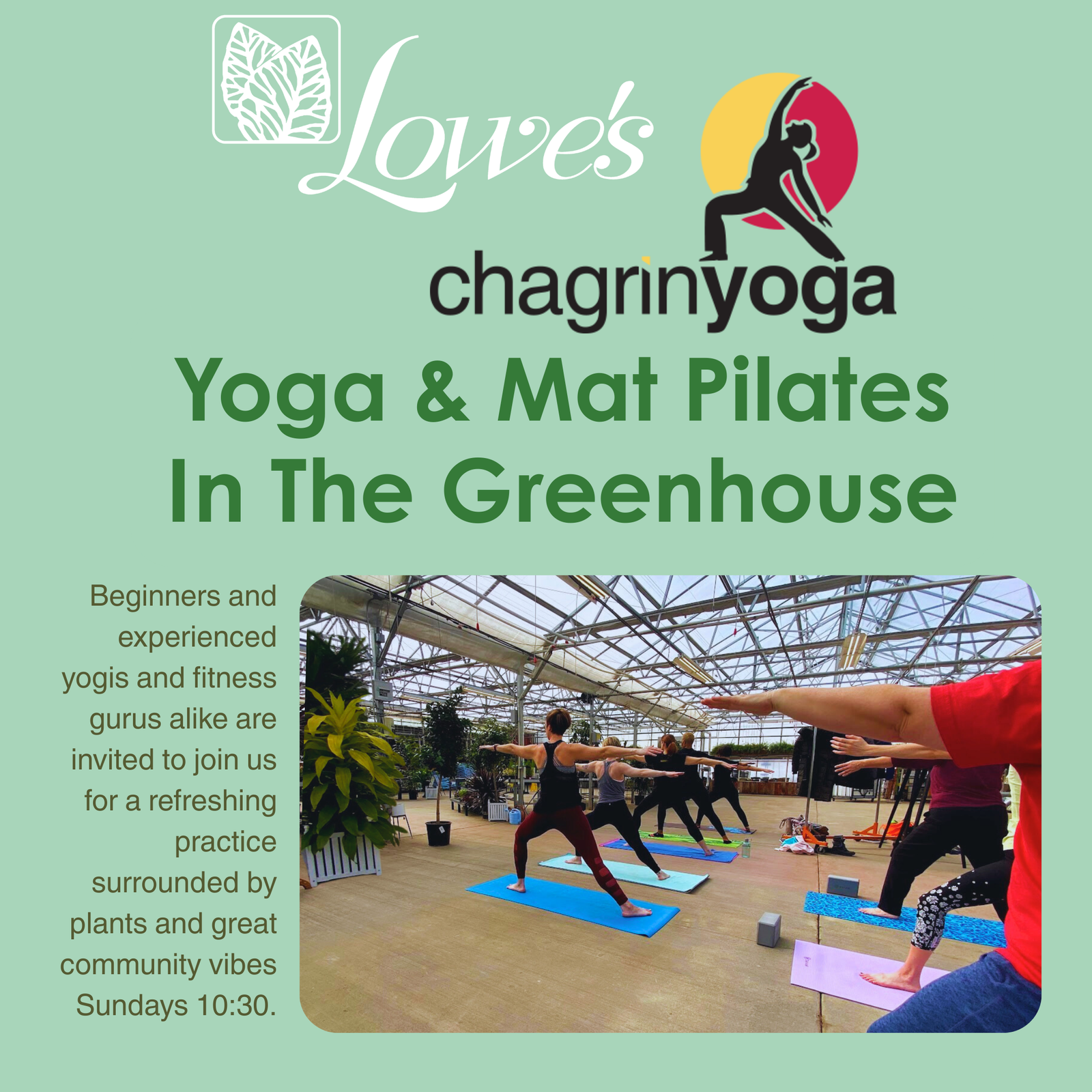 We’re back for our third year with Chagrin Yoga—and this time we’re adding something new: both yoga and mat Pilates in the greenhouse!
