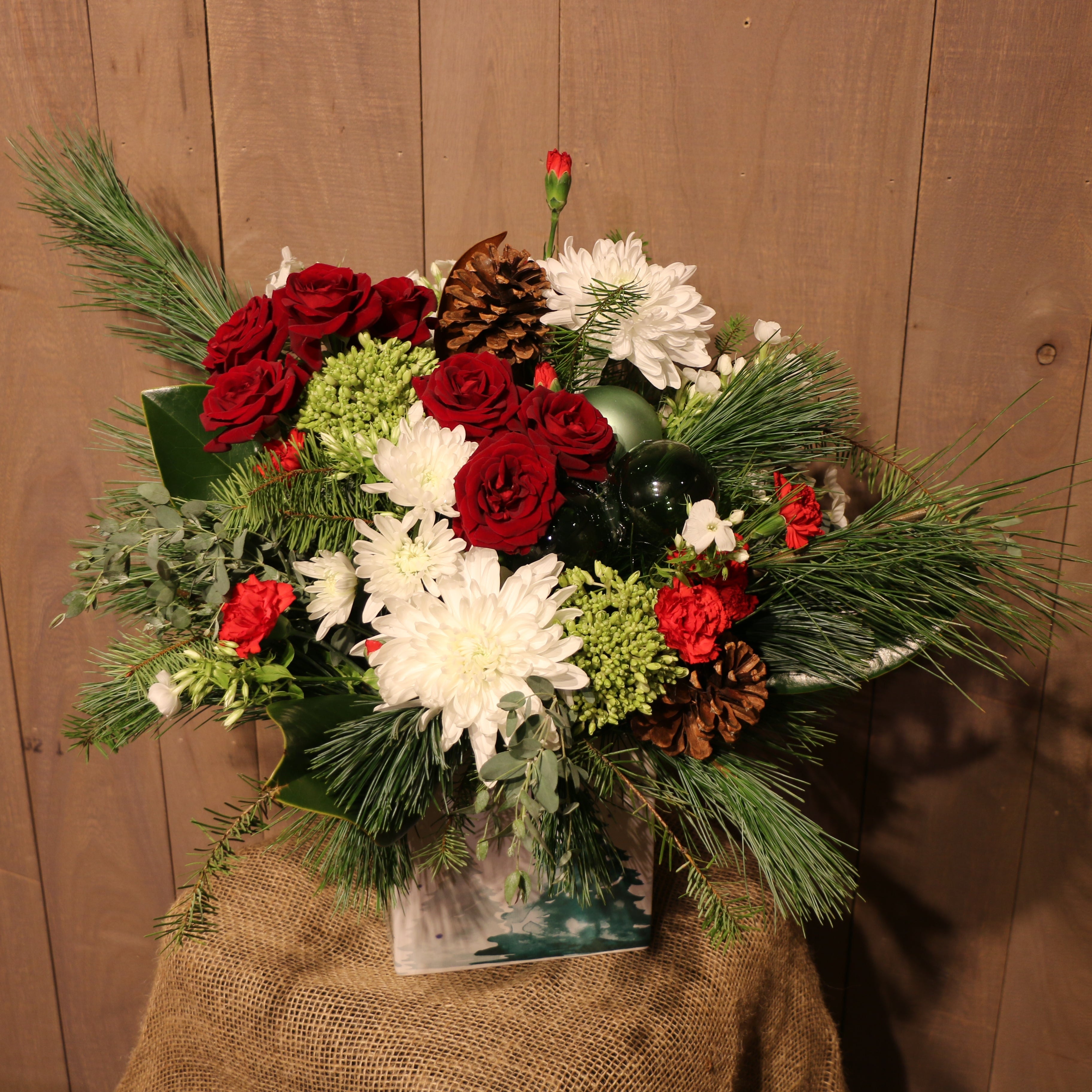 Bring home the simple magic of a country Christmas with this cozy, rustic holiday arrangement.